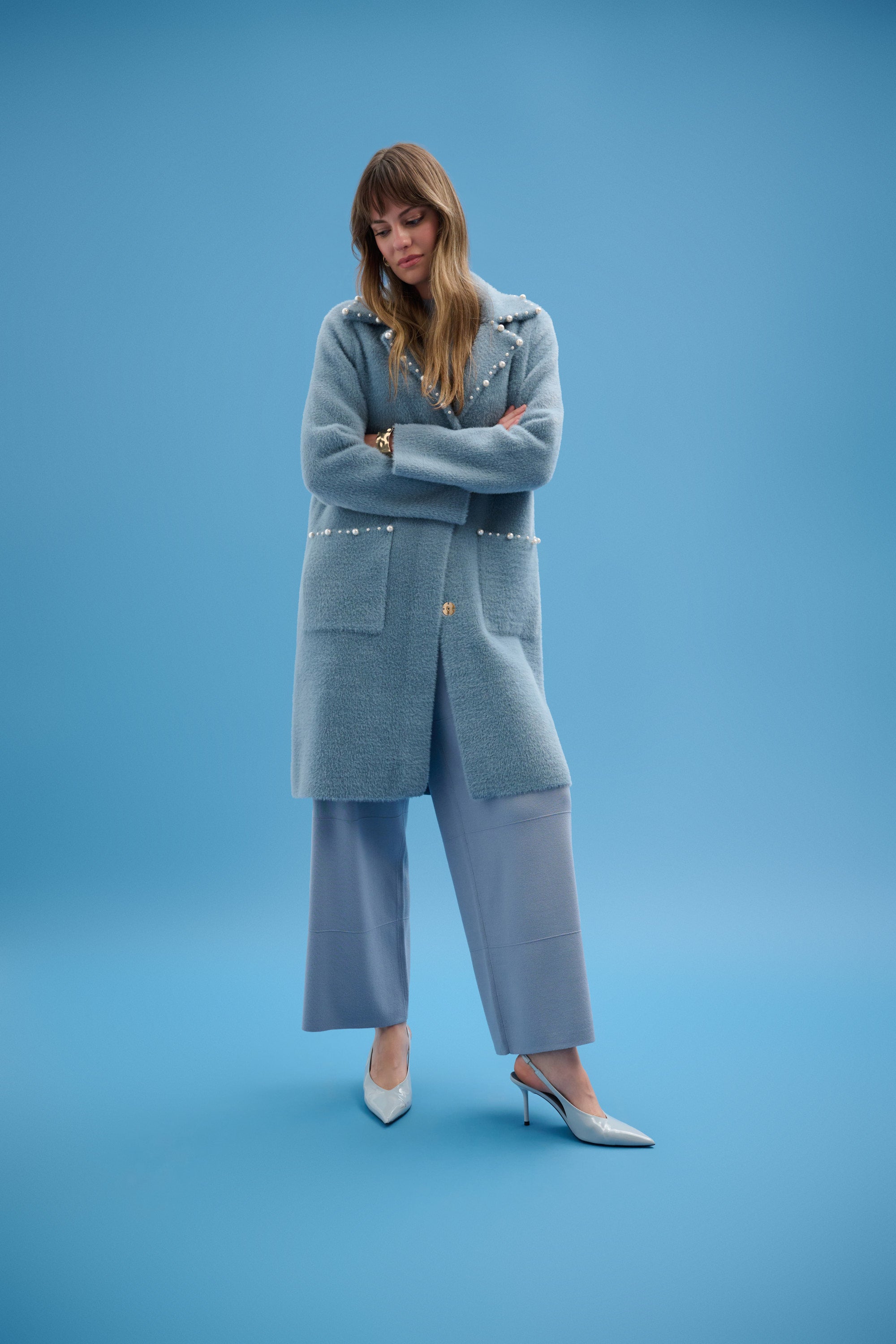 Joseph Ribkoff Feather Yarn Sweater Coat with Pearl Trim Style 261997