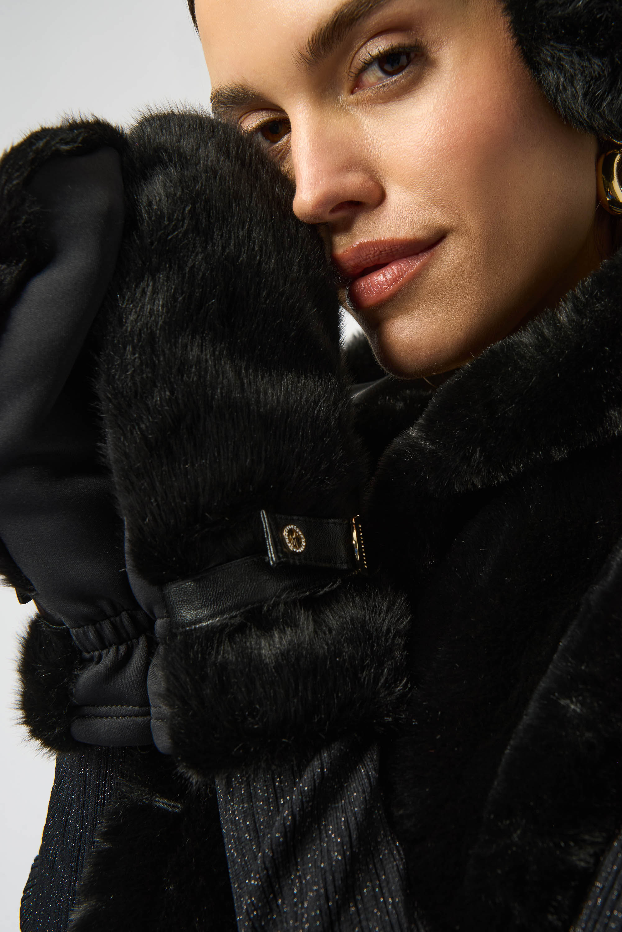 Joseph Ribkoff Faux Fur Gloves with Embellishments Style 253977