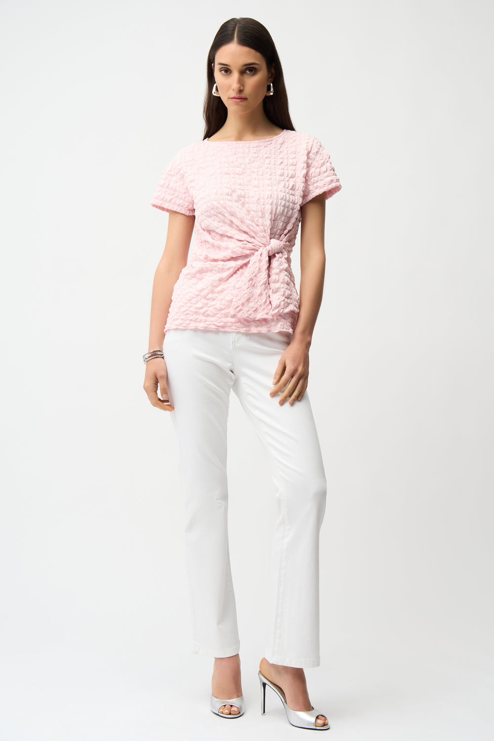 Joseph Ribkoff Bubble Jacquard Fitted Top With Sash Knot Style 261297