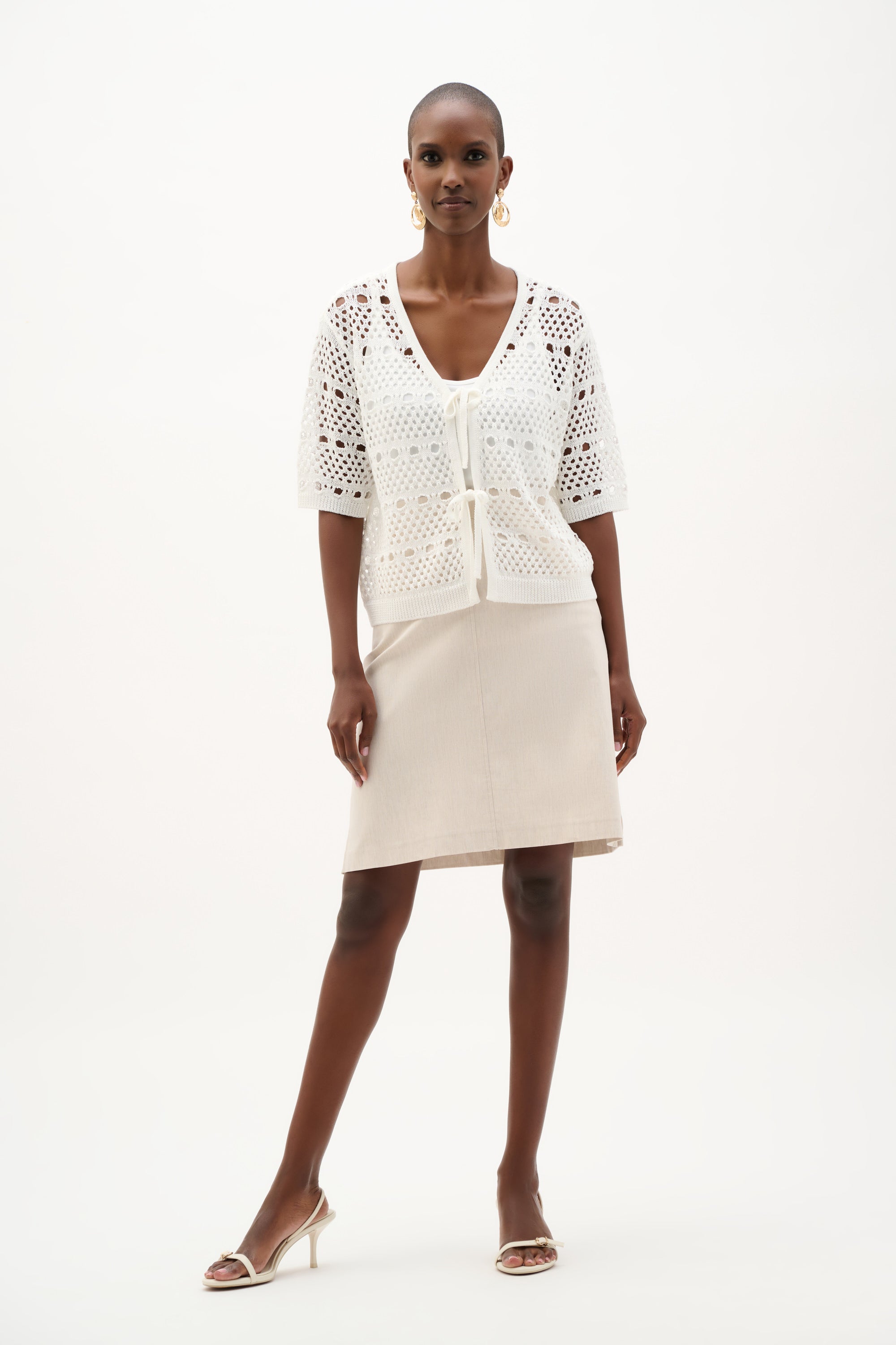 Elevate your everyday wardrobe with this Joseph Ribkoff A-line skirt, designed for effortless sophistication. The elastic waistband ensures all-day comfort, while functional front pockets—adorned with distinctive gold rivets—combine practicality with contemporary style. The unlined construction delivers a refined silhouette with subtle textural interest, making this piece versatile enough for casual outings or polished occasions. A modern essential that transitions seamlessly from season to season.