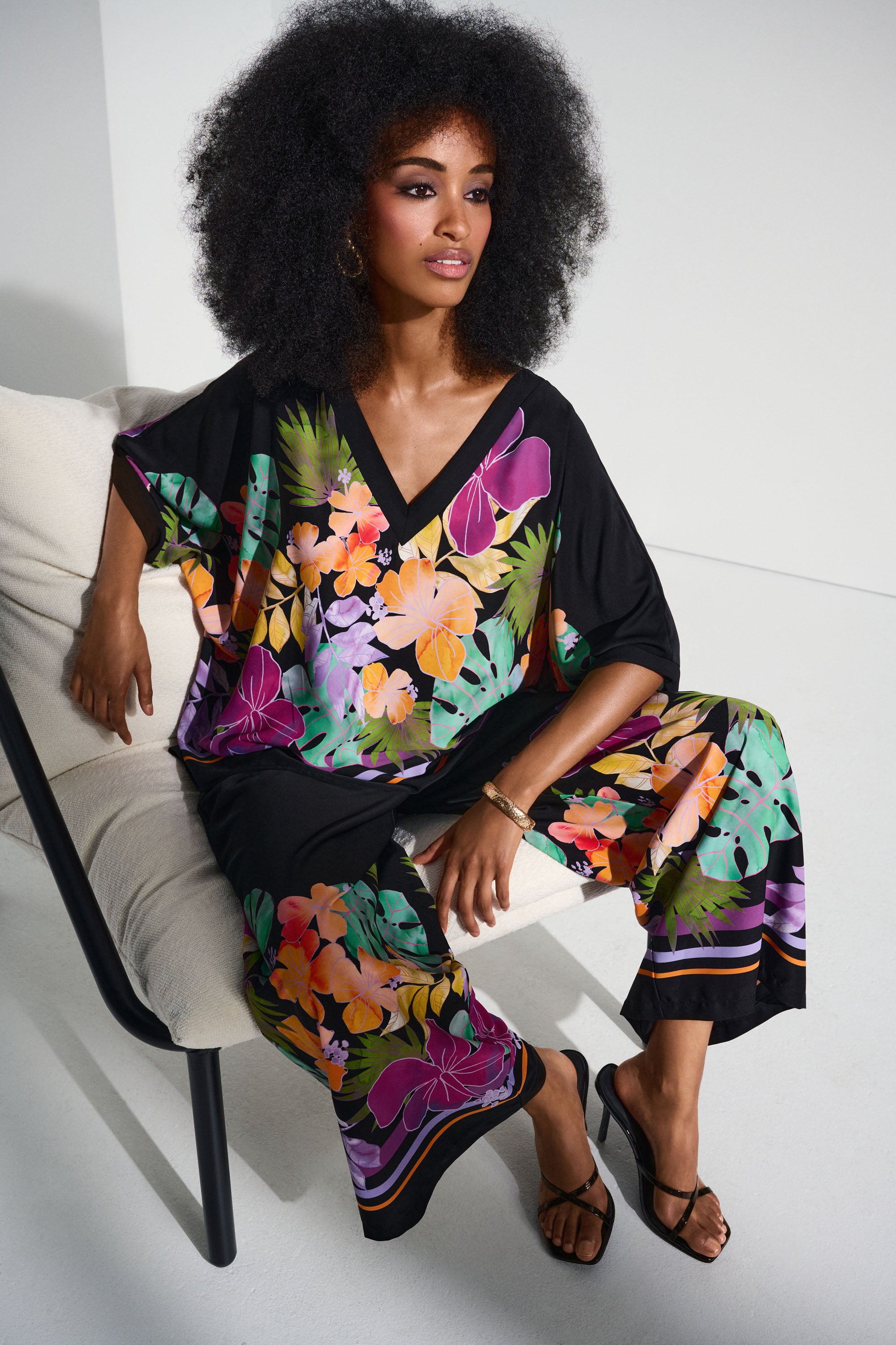 Joseph Ribkoff Black/Multi Floral Border Print Wide Leg Pants Style 252217