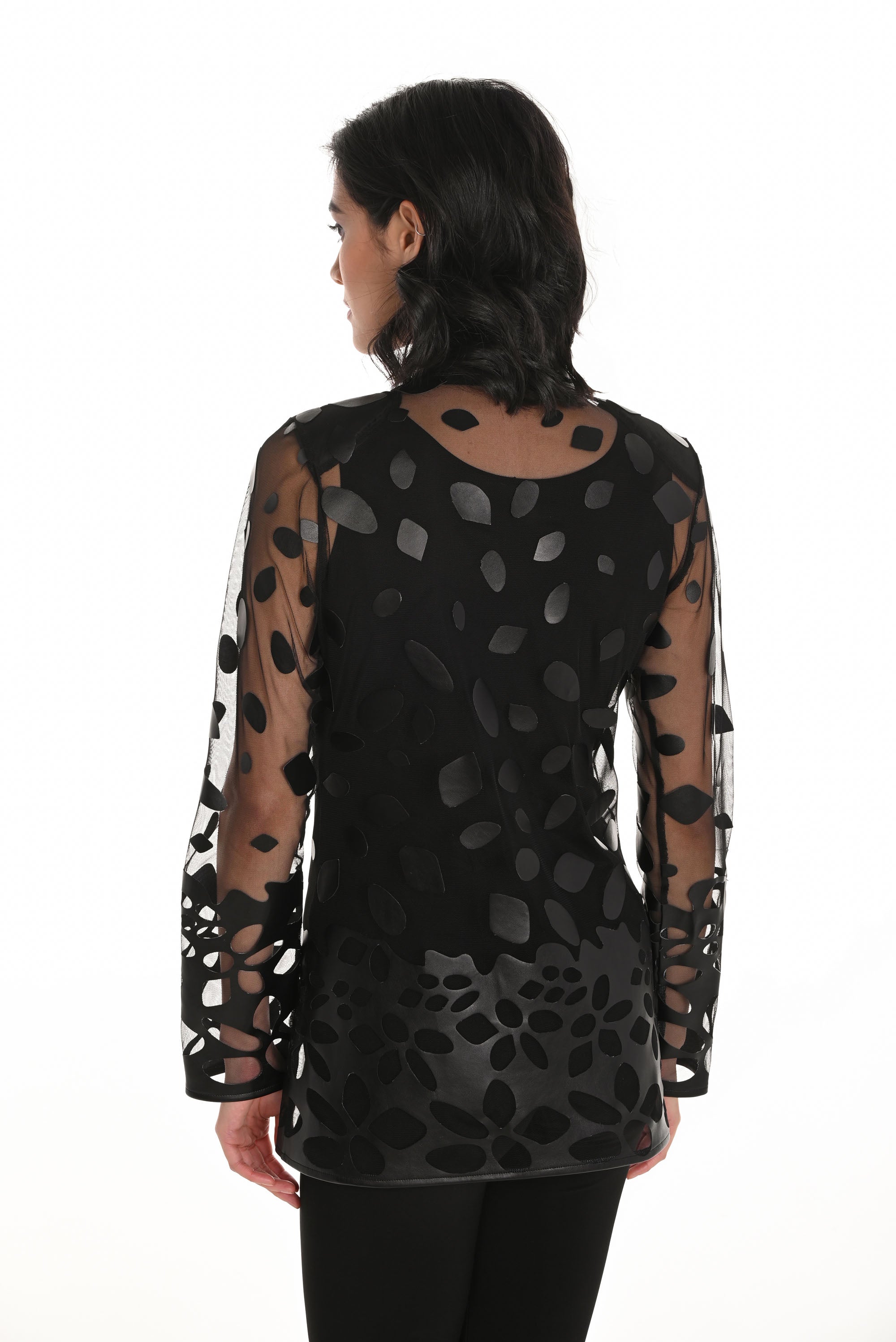 Frank Lyman Laser-Cut Leatherette on Mesh Jacket Style 253852