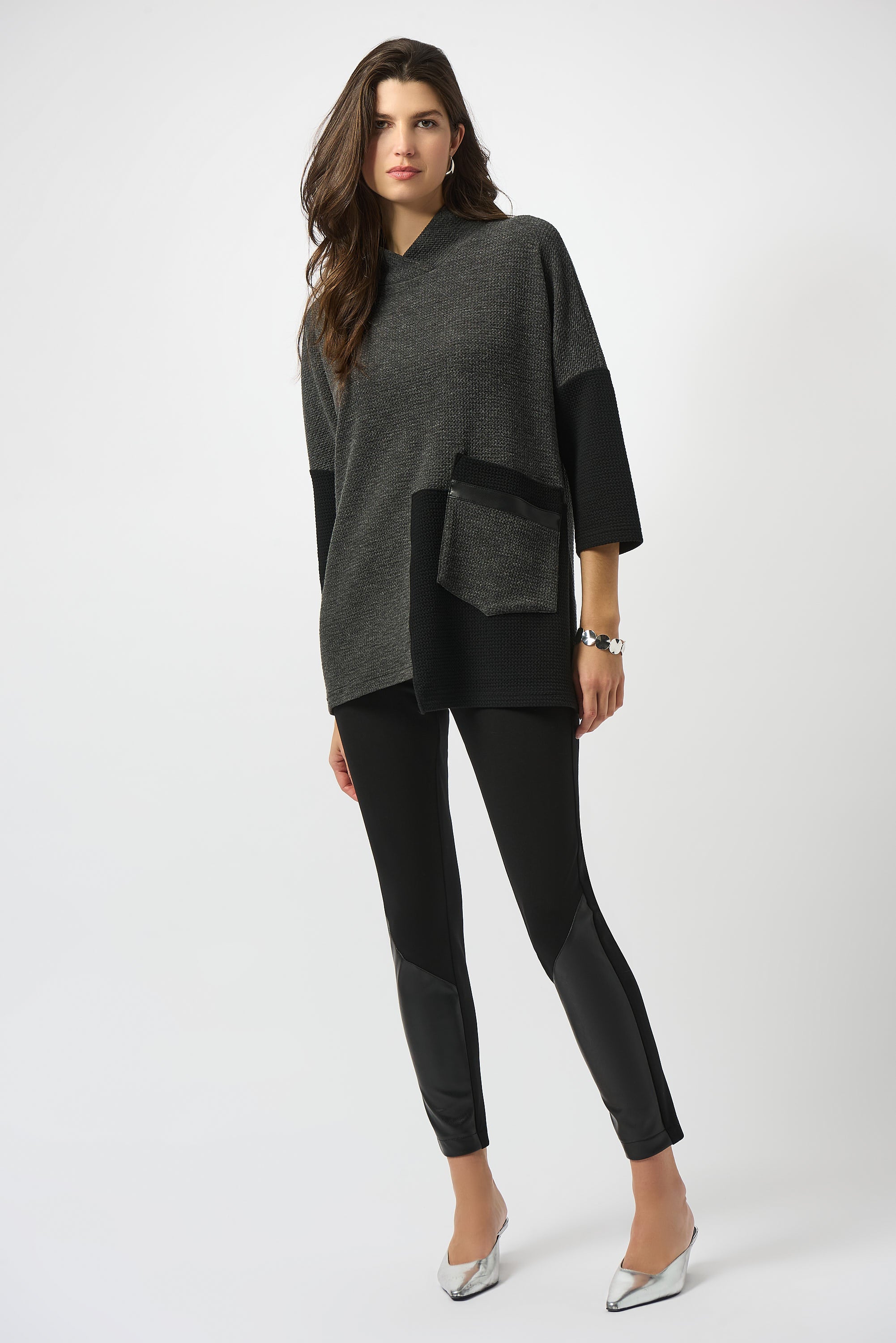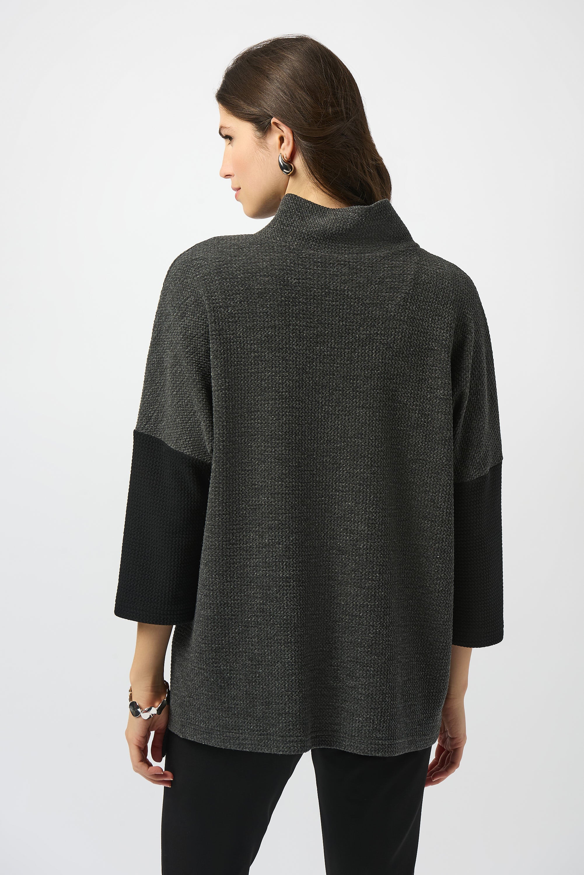 Joseph Ribkoff Grey/Black Textured Knit Color Block Boxy Top Style 253083.