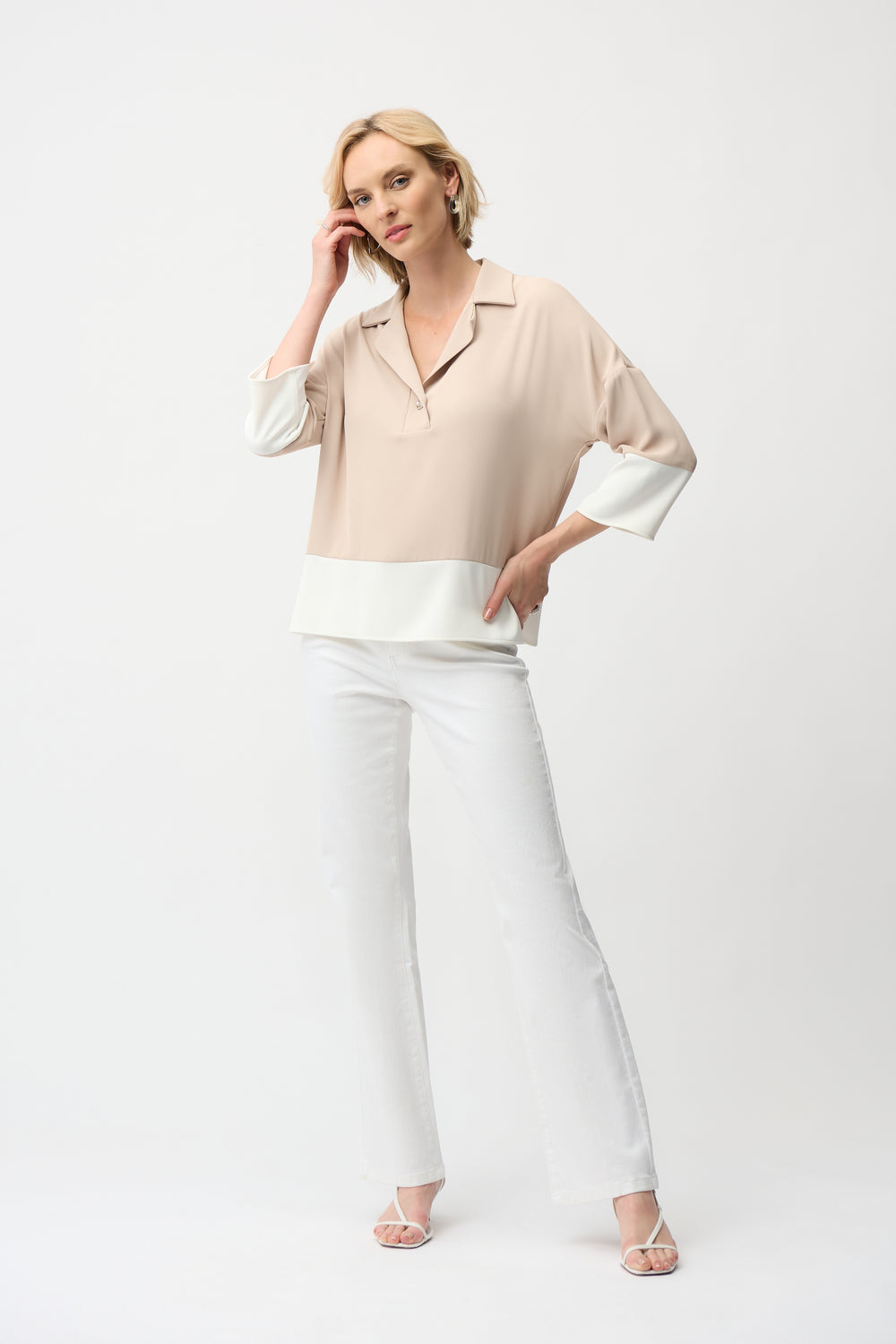 Joseph Ribkoff Color Block Boxy Top With Shirt Collar Style 261282