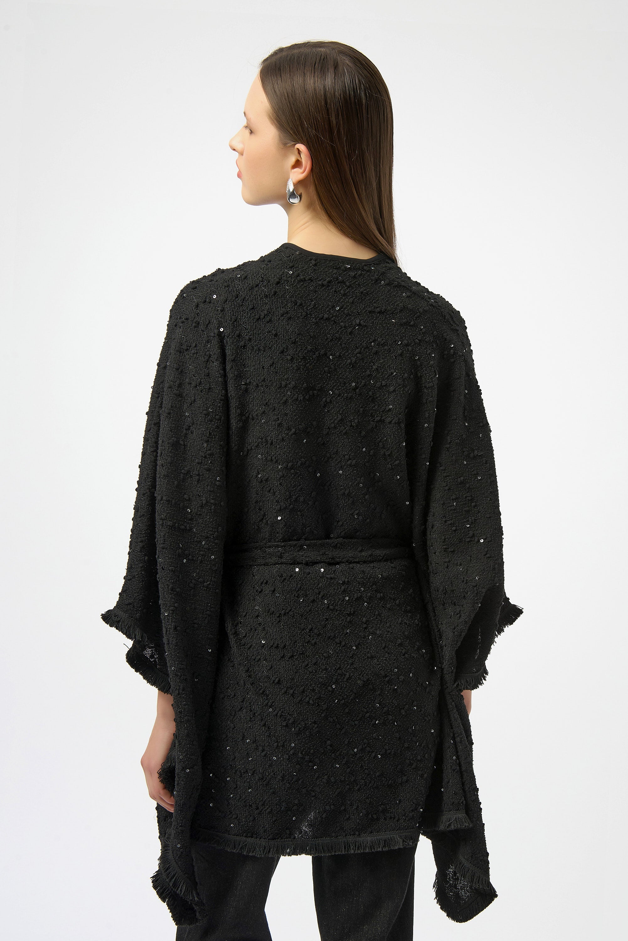 Joseph Ribkoff Sequined Bouclé Knit Belted Poncho Style 254009