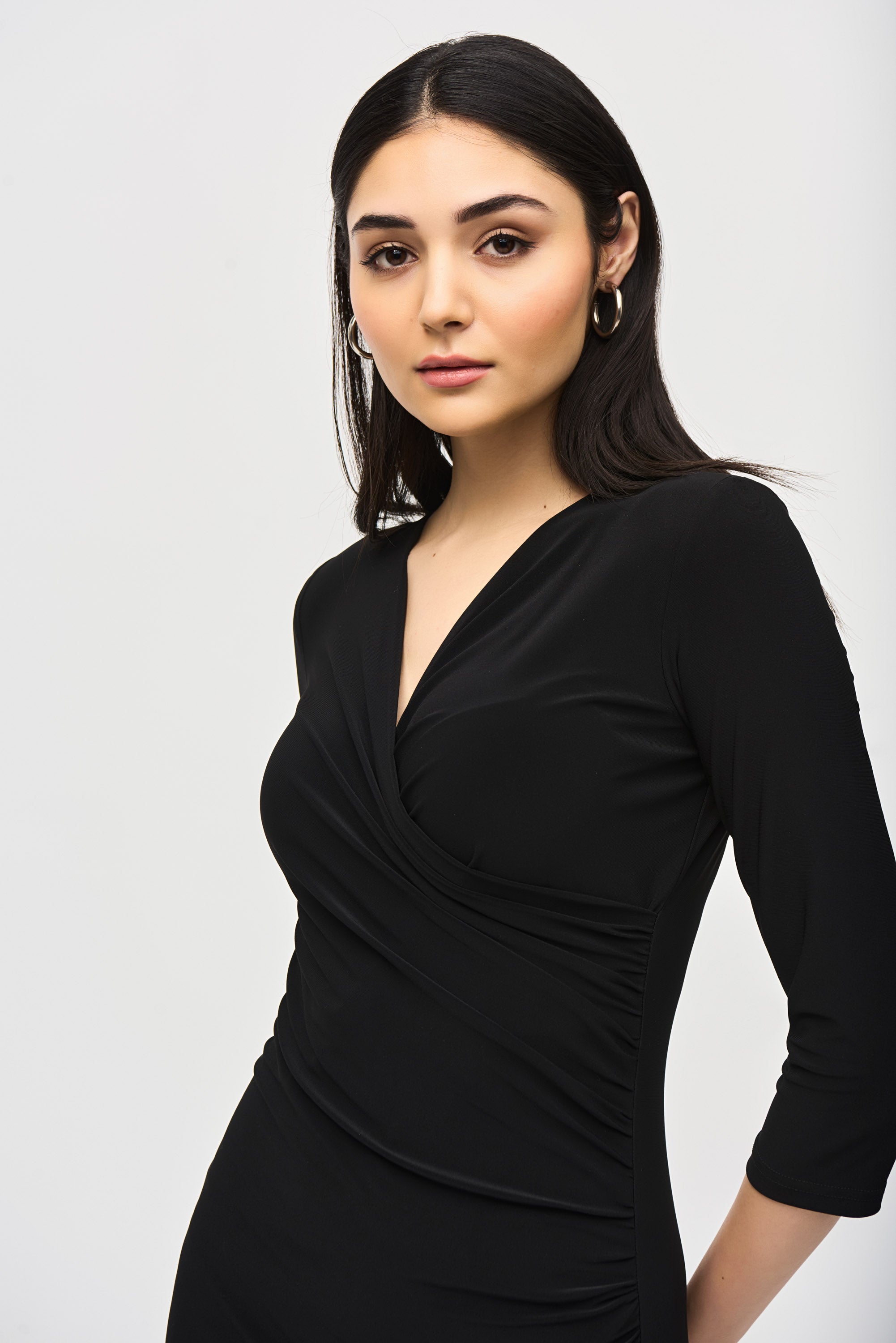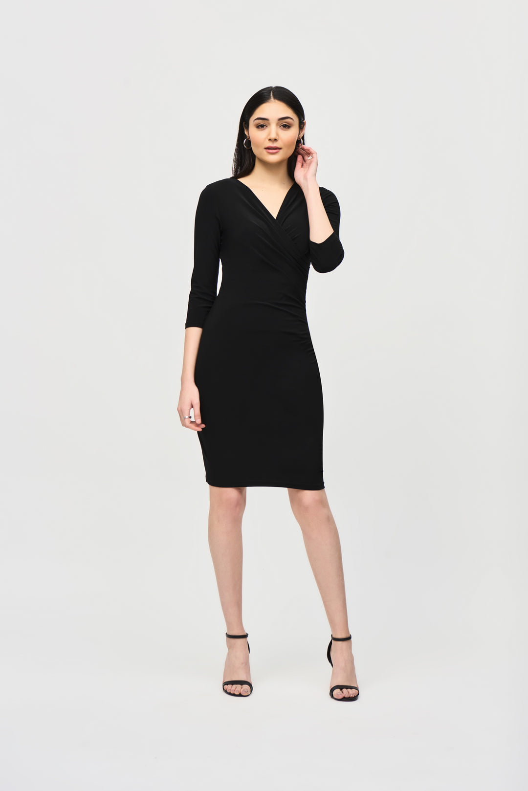 Joseph Ribkoff Black Three-Quarter Sleeve Wrap Dress Style 233305
