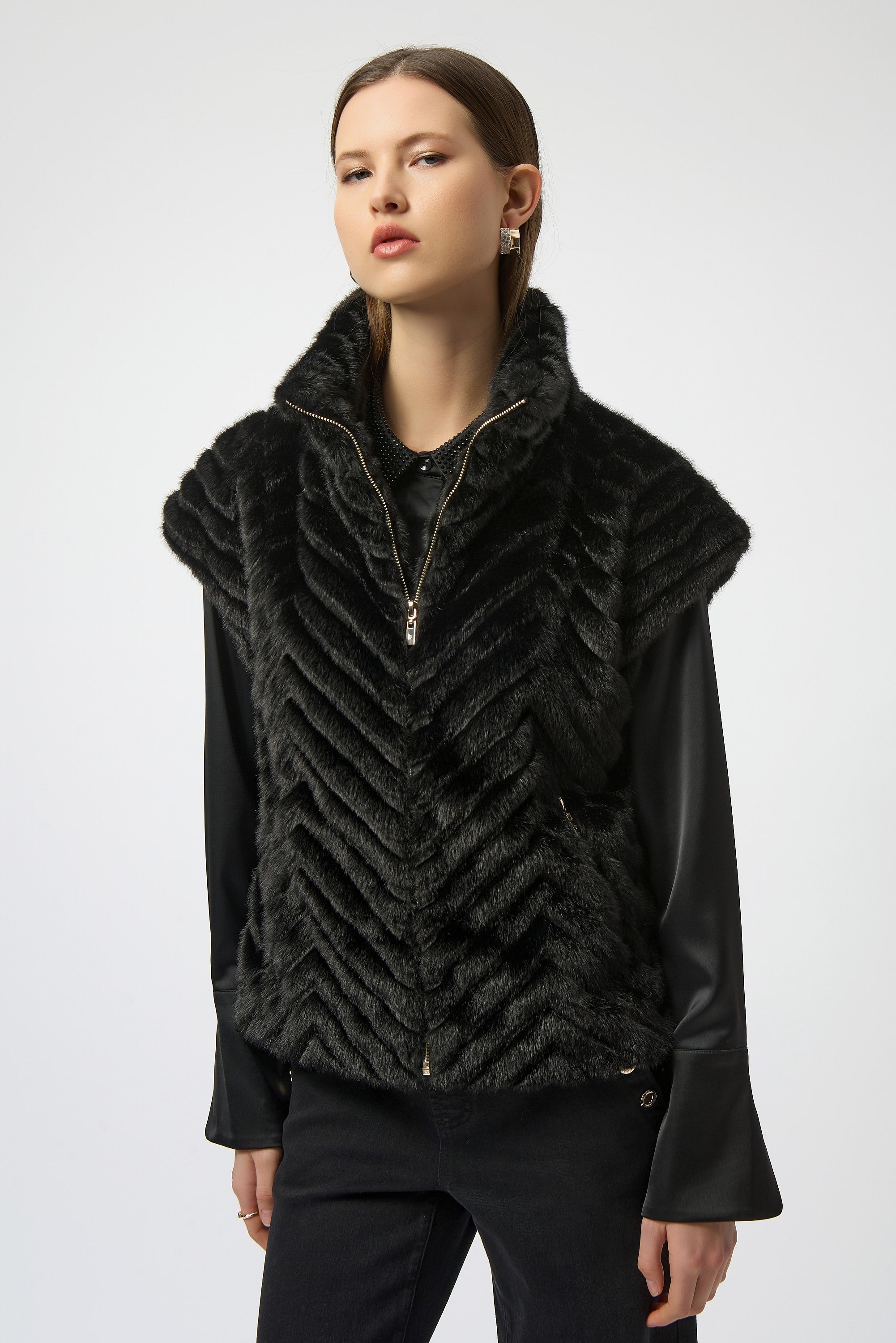 Joseph Ribkoff Chevron Faux Fur Mock Neck Vest Style 254906