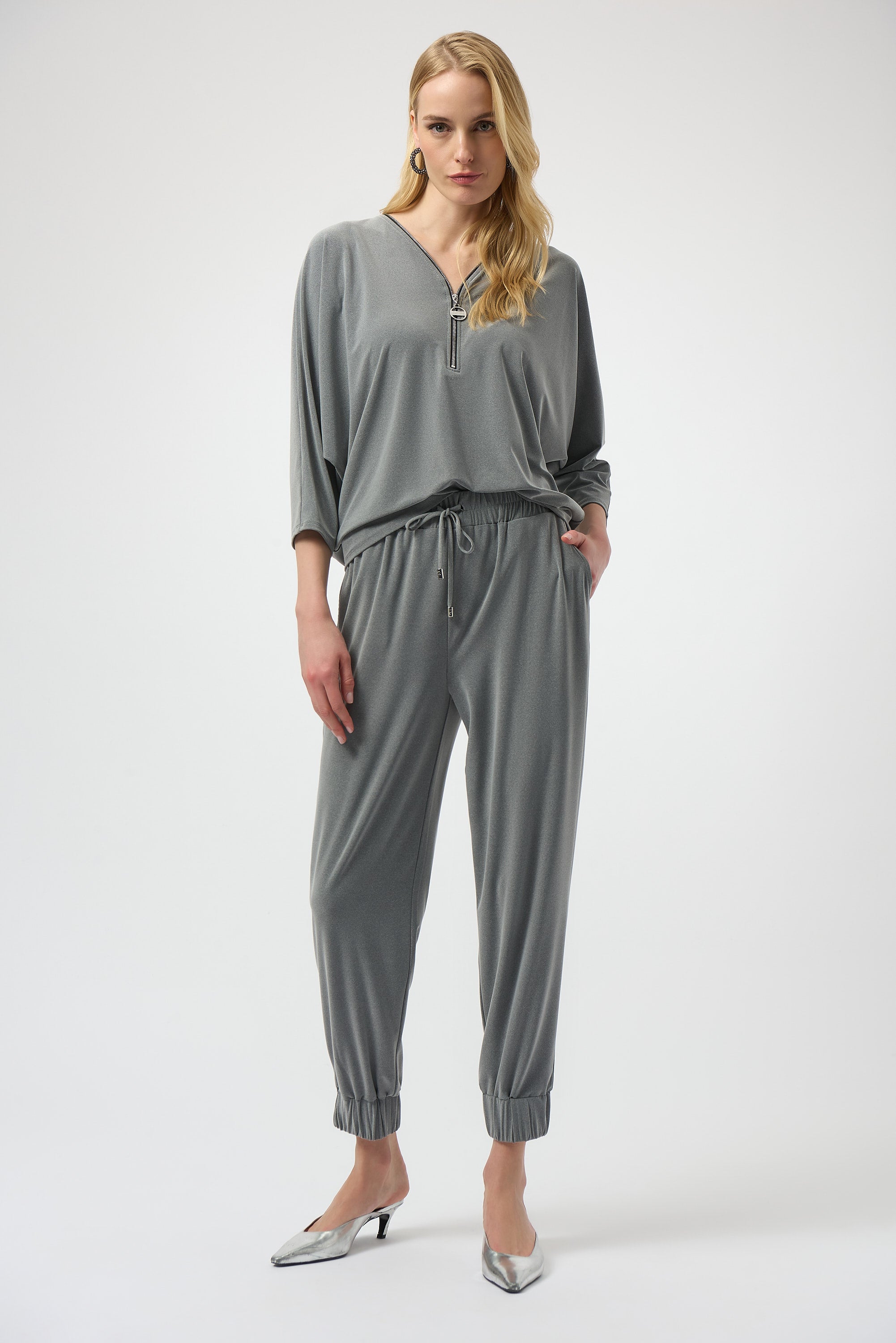 This Joseph Ribkoff boxy top combines style and comfort with a relaxed silhouette and three-quarter dolman sleeves. The flattering V-neckline is enhanced by a sleek zipper detail, adding a modern edge. Made from a buttery soft melange silky knit, it offers a luxurious feel that is gentle on the skin, perfect for elevating everyday casual looks with understated sophistication.