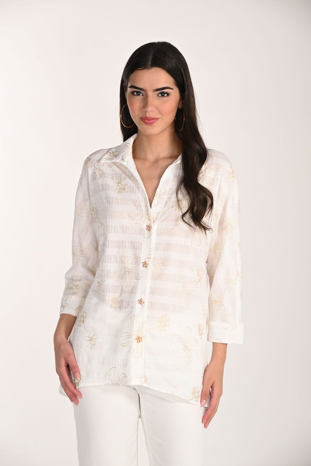 Frank Lyman Floral Embroidered Casual Shirt Style 266517