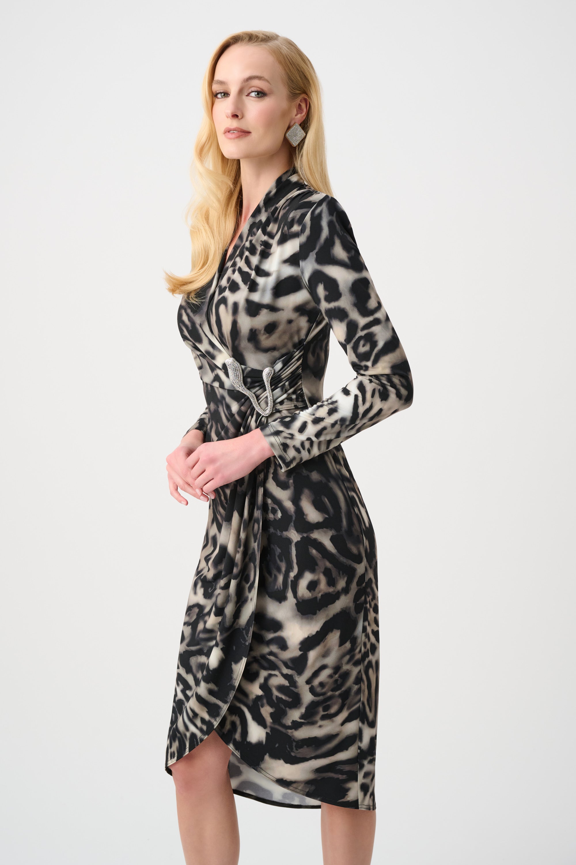 Joseph Ribkoff Animal Print Sheath Wrap Dress Style 263710