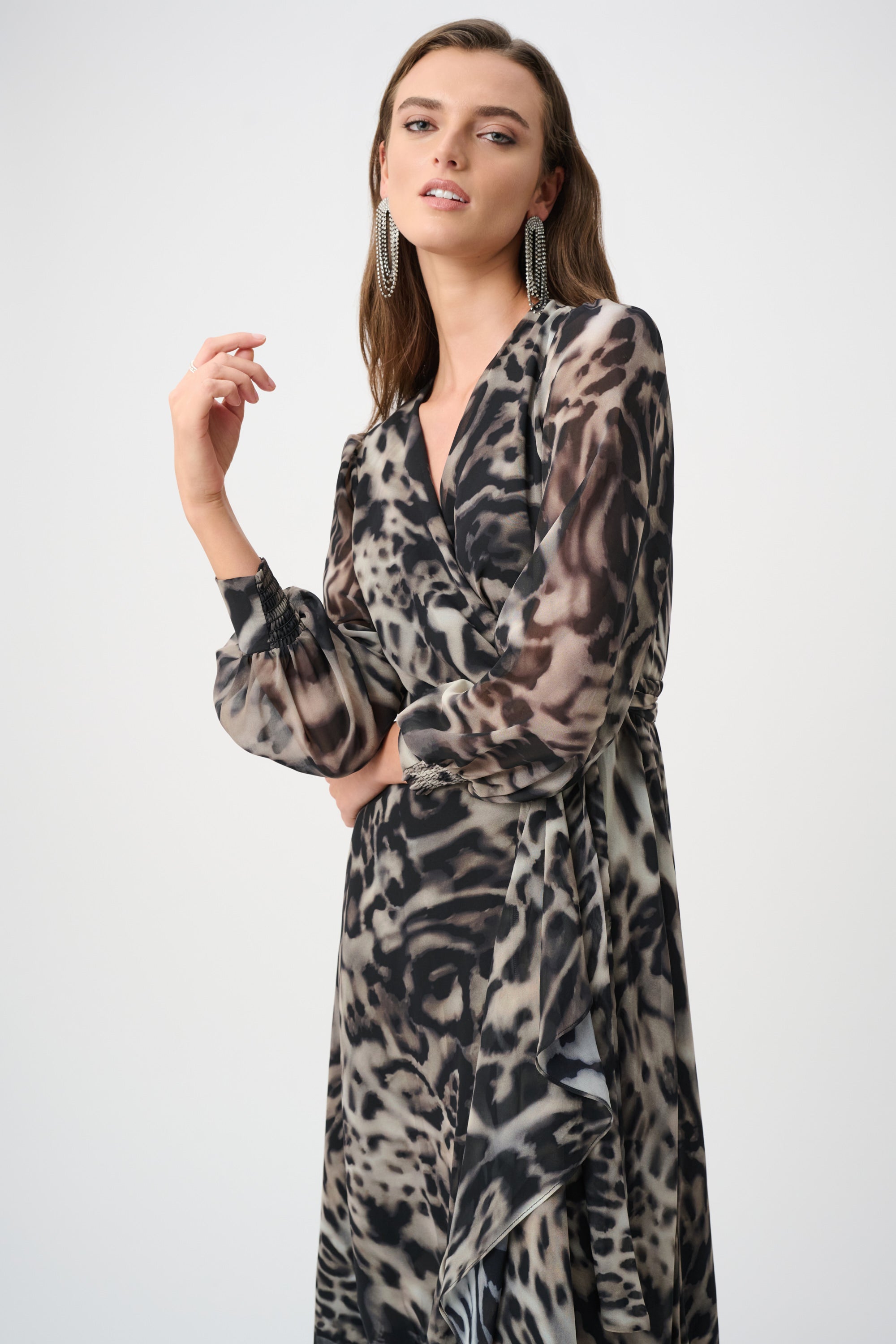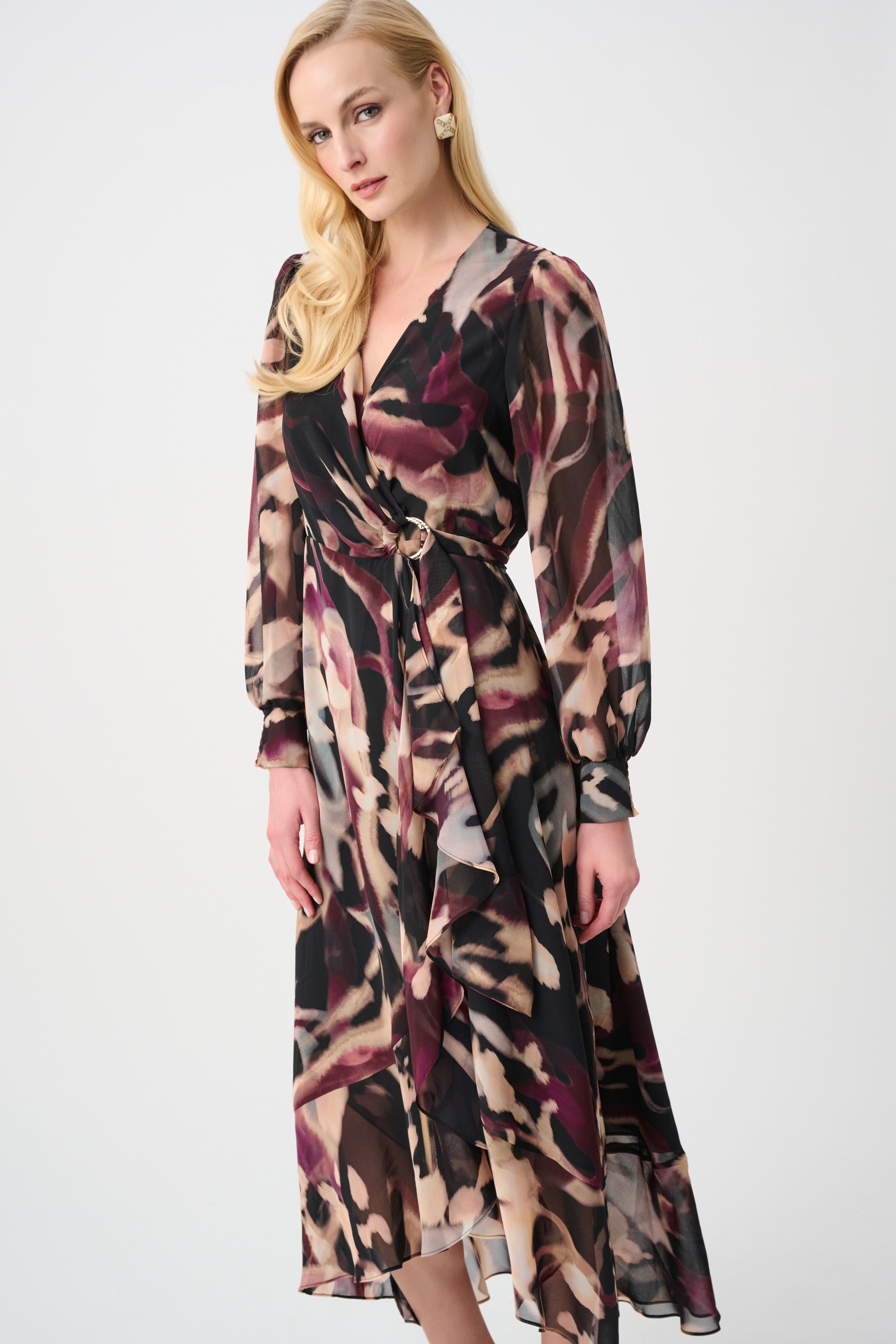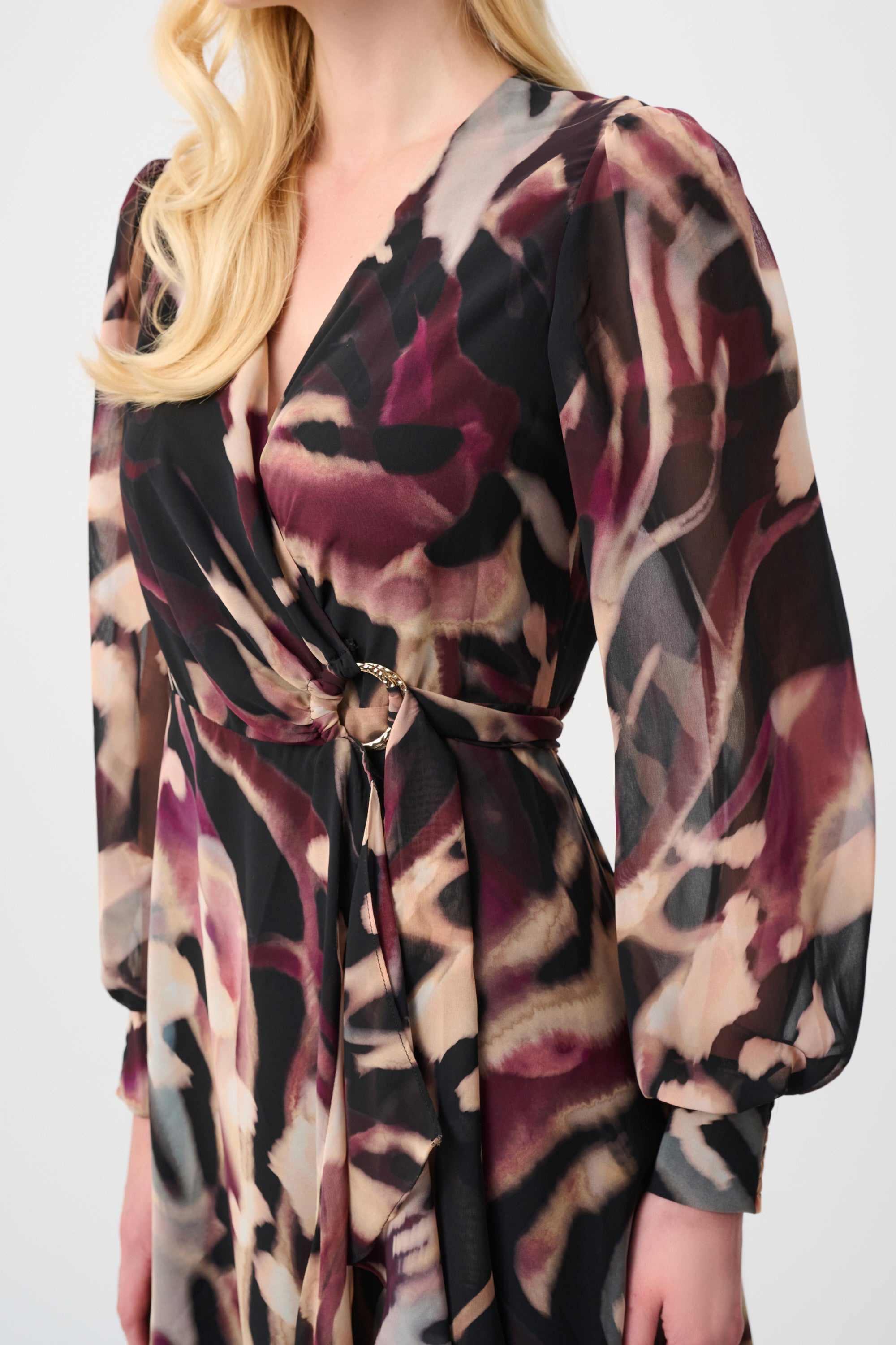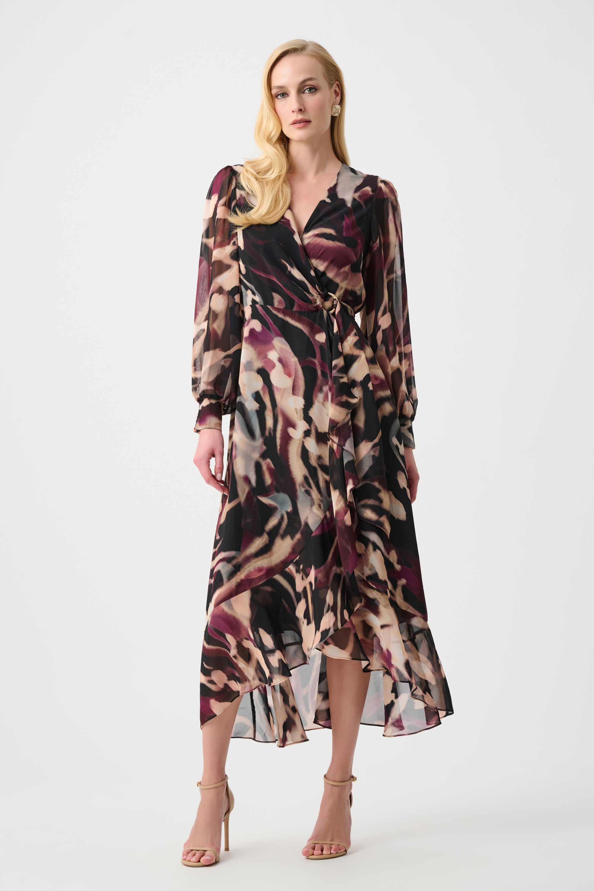 Joseph Ribkoff Chiffon Printed Fit and Flare Wrap Dress Style 263739
