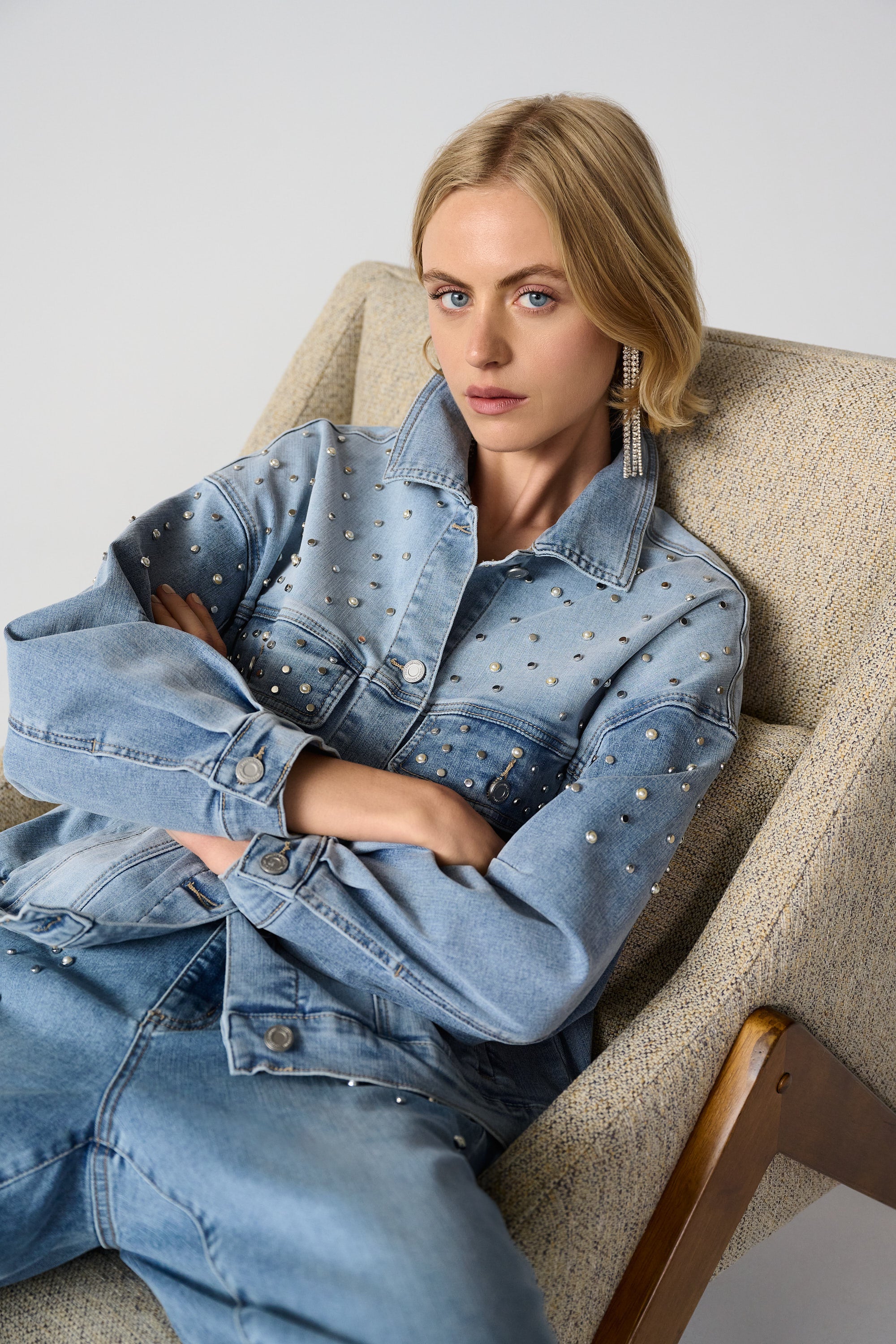 Chaqueta vaquera extragrande Joseph Ribkoff con perlas y tachuelas (estilo 261946)