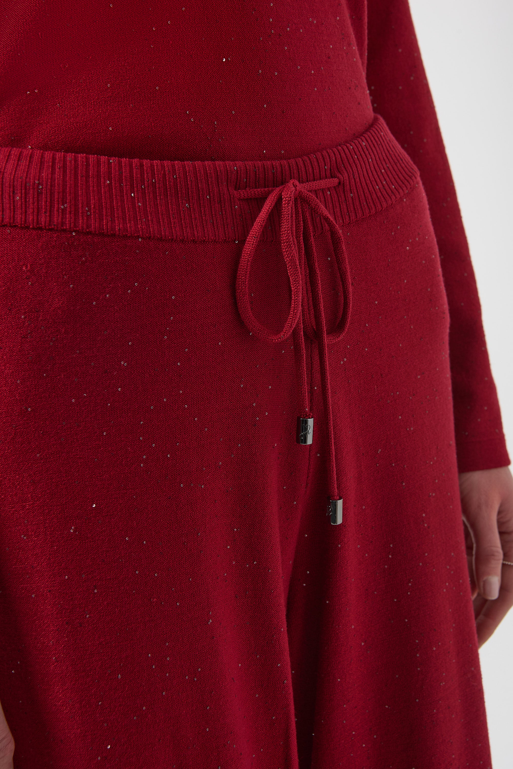 Confeccionados en un lujoso jersey de viscosa con lentejuelas brillantes, estos pantalones culotte combinan sofisticación y comodidad. La cinturilla elástica proporciona un ajuste a medida y flexible, lo que los hace perfectos para ocasiones refinadas donde la elegancia natural es esencial. Su silueta fluida y su sutil brillo te harán destacar con una gracia discreta.