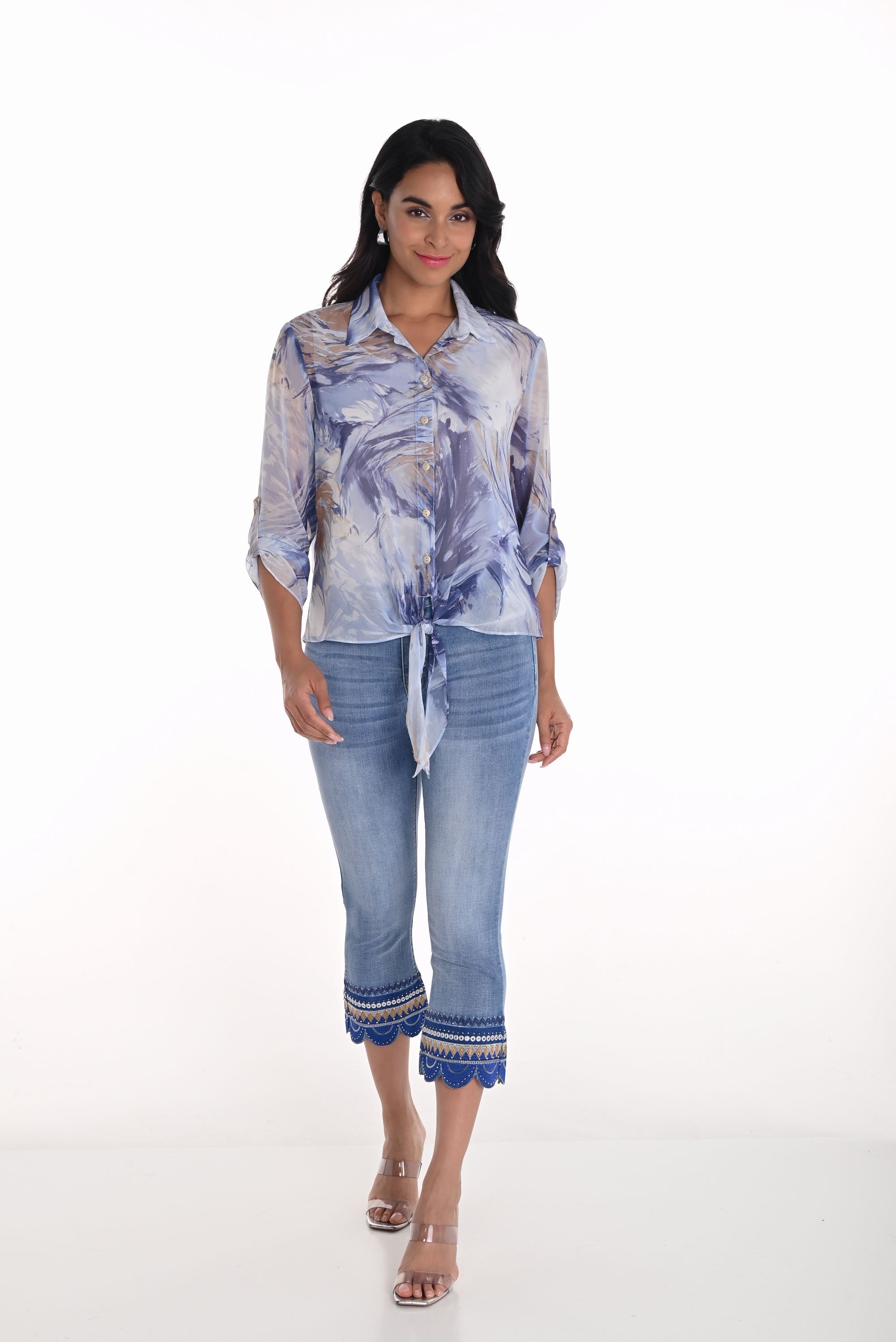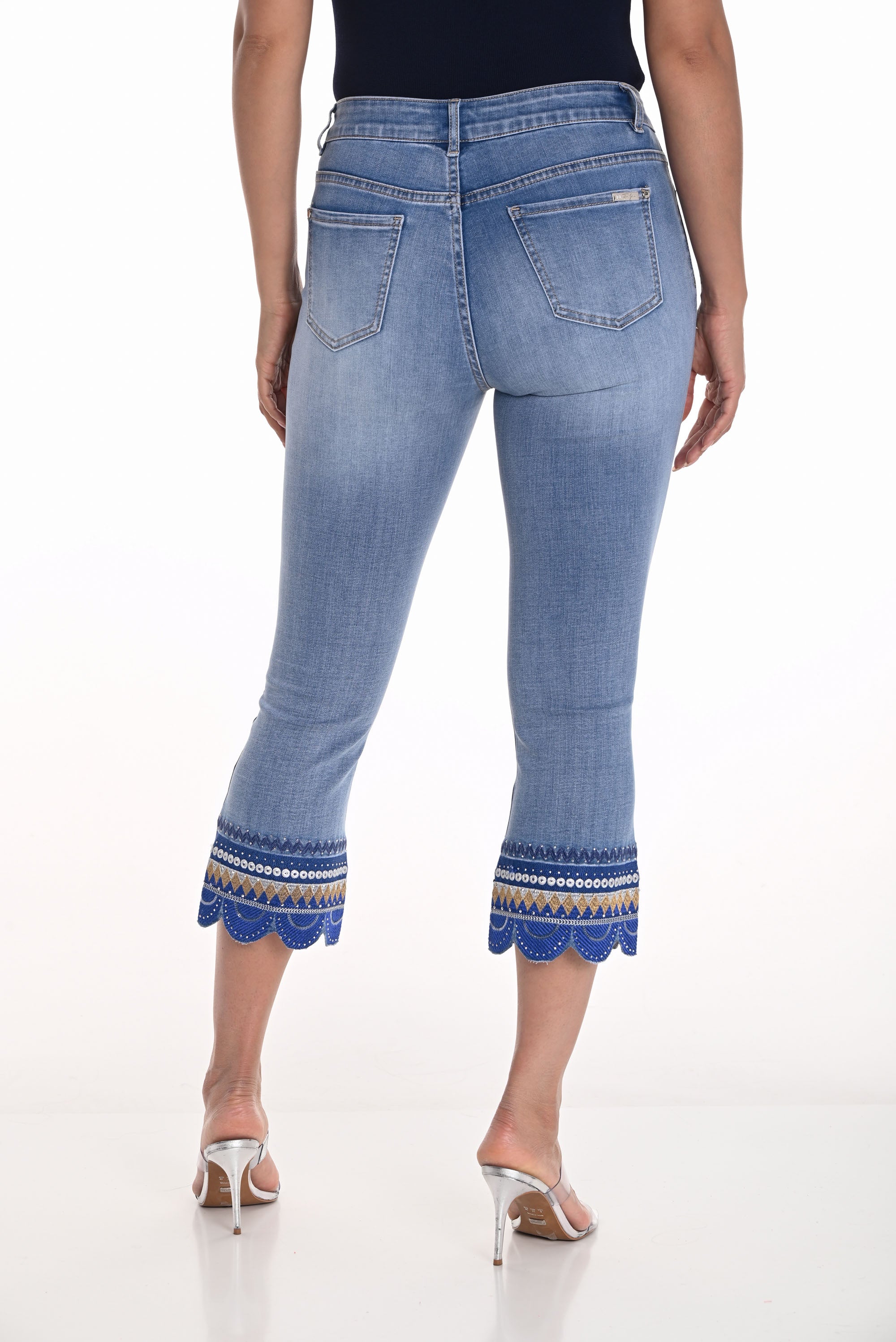 Mejora tu estilo vaquero con los jeans azules cropped de Frank Lyman. Con intrincados detalles bordados en el bajo, estos jeans añaden un toque de sofisticación a cualquier look casual. Confeccionados en mezclilla azul de alta calidad, ofrecen estilo y comodidad. Mejora tu look con estos jeans exclusivos.