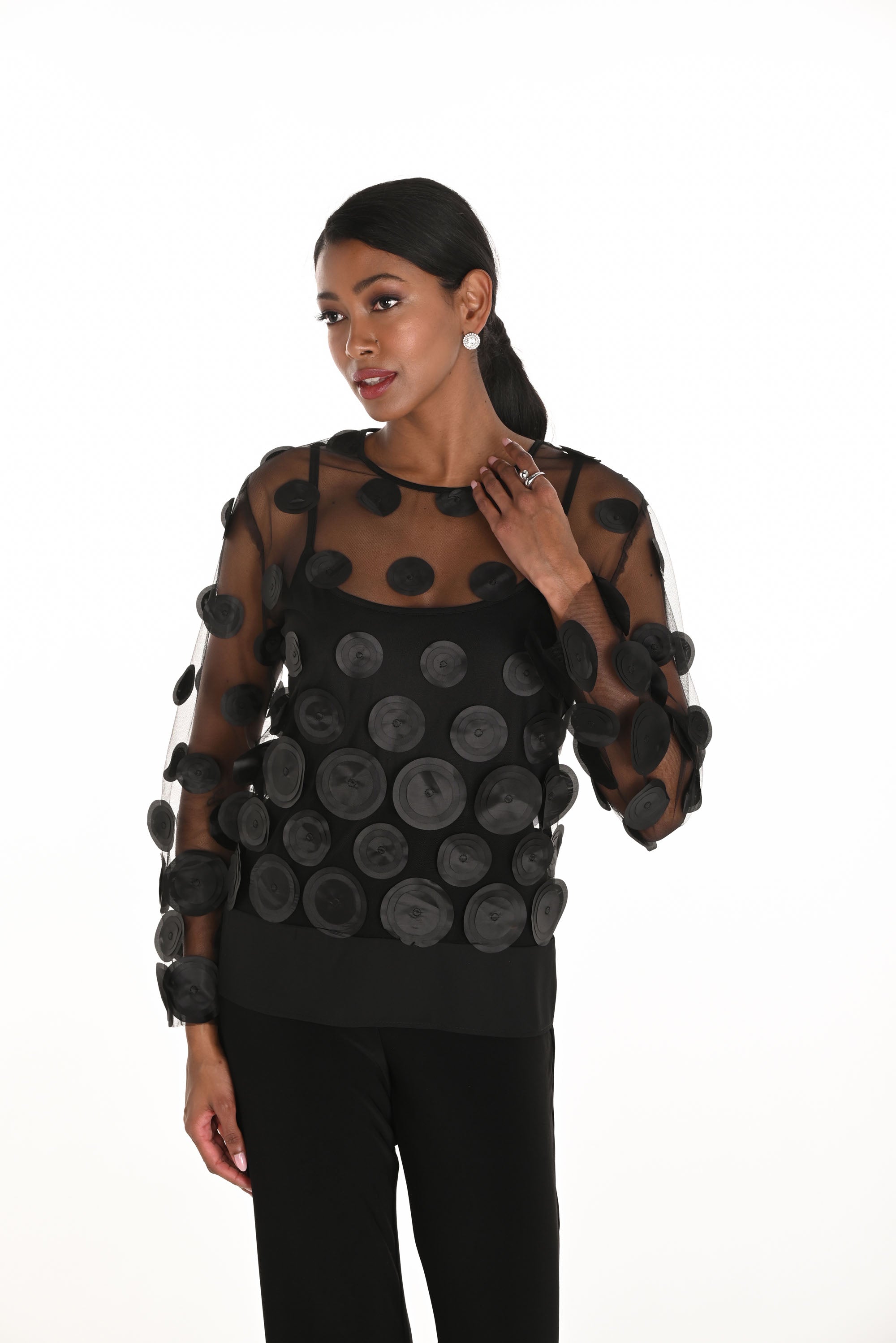 Haut noir Frank Lyman à pois 3D et maille, modèle 259708