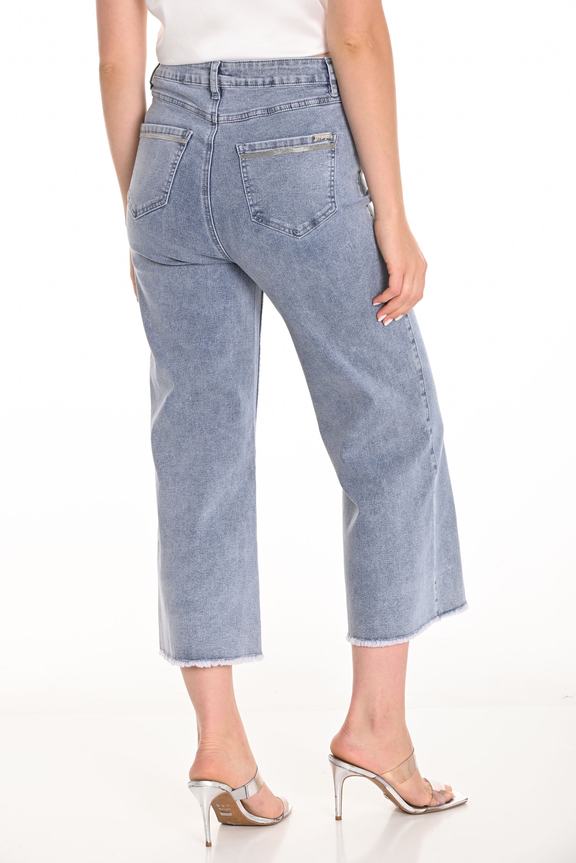 Frank Lyman Blue Denim Cropped Pants with Slit Hem Style 251500